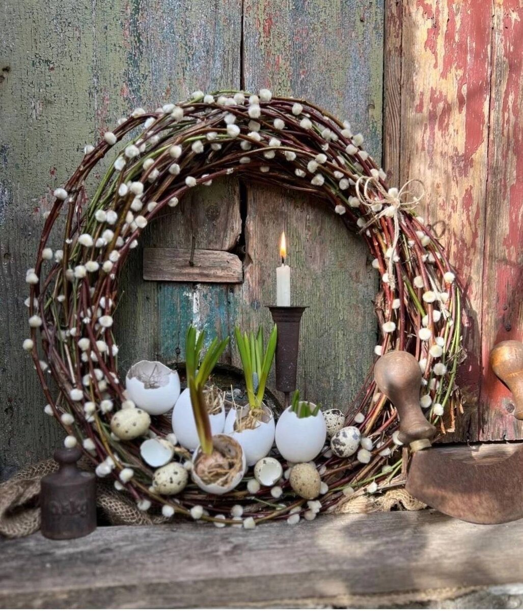 ✨Идеи использования природных материалов в пасхальном декоре + несколько мастер-классов✨ Сейчас идет весенняя срезка веток. Их можно не только поставить в вазу, но и сделать отличные основы для венка или гнезда. Хорошо гнутся ветки березы и ивы. А еще уже начали продавать вербу, её тоже можно вплести в композицию. Скорлупки от яиц, мох, гипсофила, сено - всё это довольно долговечно и даже если вы уже сейчас сделаете праздничное оформление, оно дождется Пасхи. Используя эти материалы, вы сможете создать уникальные и экологически чистые украшения.😌 #Masya_idea