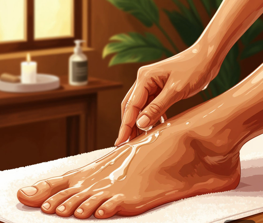 Грубая кожа стоп смягчается, лицо молодеет, а стопы расслабляются: часть делаю масляные растирания стоп, которые занимают 5-6 минут