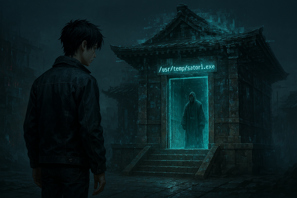 Есть места, которые не отображаются на карте, но всегда ведут тебя туда, где ты давно уже был. Или где тебя никогда не существовало. Кайто бежал от Кодового Отдела не по улицам, а по коридорам между слоями реальности. Это было не движение в пространстве, а сбой в логике: он исчезал из одной сцены и появлялся в другой, как персонаж, вырезанный и вставленный в новый эпизод. Когда он добрался до места, которое не искал, солнце зависло в небе, как зависший курсор. Время не шло — оно перезагружалось. Перед ним стоял храм. Тот, кто строил его, явно использовал архитектуру дзэн и багов одновременно: стены текли, как глюки текстур, а ступени под ногами шевелились, будто под ними были мысли, а не камень. Купола были прозрачны, как забытые намерения, и крыша отражала не небо, а внутренности кода. Кайто остановился на пороге. Табличка у входа гласила: /usr/temp/satori.exe Он вошёл. Внутри царила тишина, но не монастырская — тишина системного ожидания. Как если бы здесь обитала программа, ожидающа