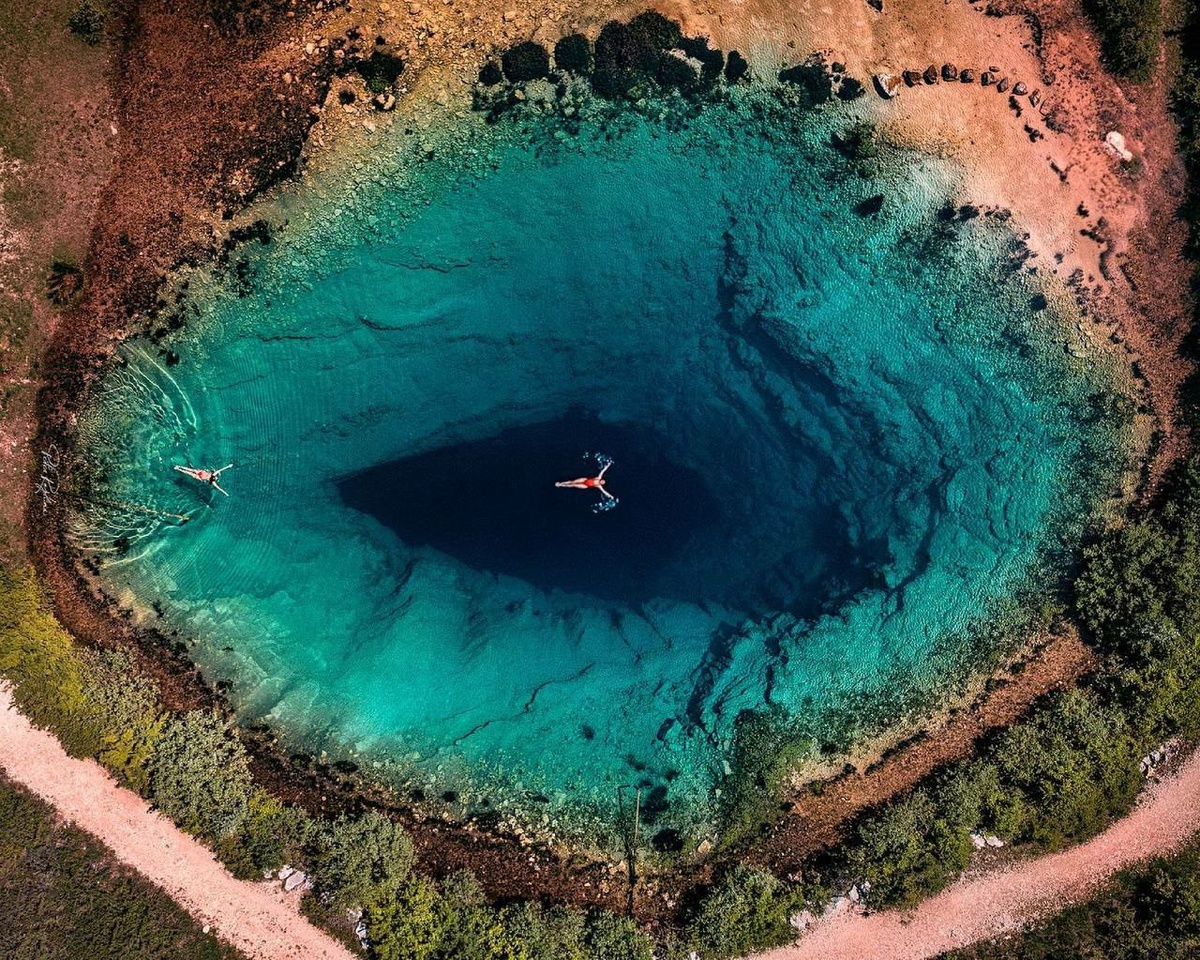 В живописной местности Хорватии, всего в 7 километрах от города Врлика, расположилось удивительное природное образование – озеро Главашево. Этот небольшой карстовый водоем получил романтичное название “Глаз Земли” благодаря своей необычной внешности. Главной особенностью озера является его кристально чистая вода лазурного оттенка, сквозь которую можно наблюдать вход в подземную пещеру. Что касается глубины этого природного чуда, то она поистине впечатляет: дайверы смогли достичь отметки в 155 метров, но даже это не позволило им добраться до дна. По сути, озеро представляет собой заполненную водой пещеру, которая может простираться еще глубже в земные недра. Несмотря на привлекательный внешний вид, озеро остается довольно суровым: даже в самые жаркие летние дни, когда температура воздуха достигает +35 градусов, вода остается ледяной, не превышая отметки +7 градусов. К тому же, крутые и скользкие берега в сочетании с большой глубиной делают купание крайне опасным. В связи с этим большин