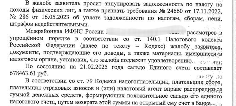 ✉️ Пришел ответ, нашу позицию приняли. Решение с доначислениями отменили полостью. Распоряжайтесь переплатой, как хотите!