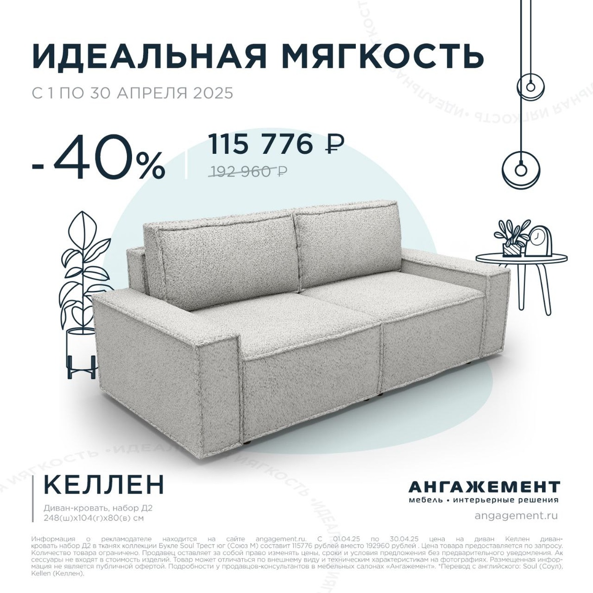 💥Весь апрель, мягкий диван-кровать Kellen с выгодой 40%!