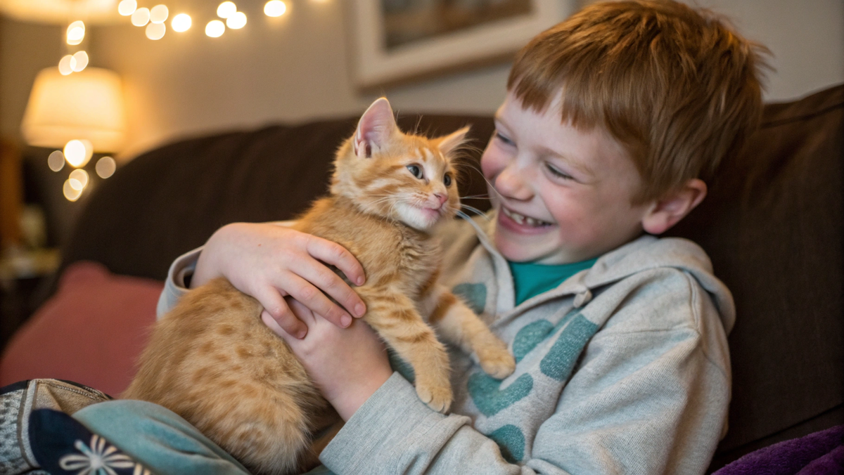 Кот, словно почувствовав это, подошёл ближе и теперь смотрел прямо на мальчика, склонив голову набок.
