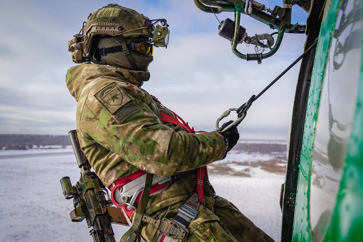 🦇 Рота разведки 33-й бригады оперативного назначения совместно с авиационной эскадрильей Северо-Западного округа Росгвардии отработали беспарашютное десантирование в Ленинградской области. 🚁 В ходе занятий росгвардейцы десантировались с вертолетов Ми-8 посадочными и штурмовыми способами с применением альпинистского снаряжения, канатов скоростного спуска, а также выполнили эвакуацию с применением каната. 👊 Военнослужащие Росгвардии тренировались в условиях, максимально приближенным к боевым, совершая высадку из вертолета в полной экипировке и с оружием.