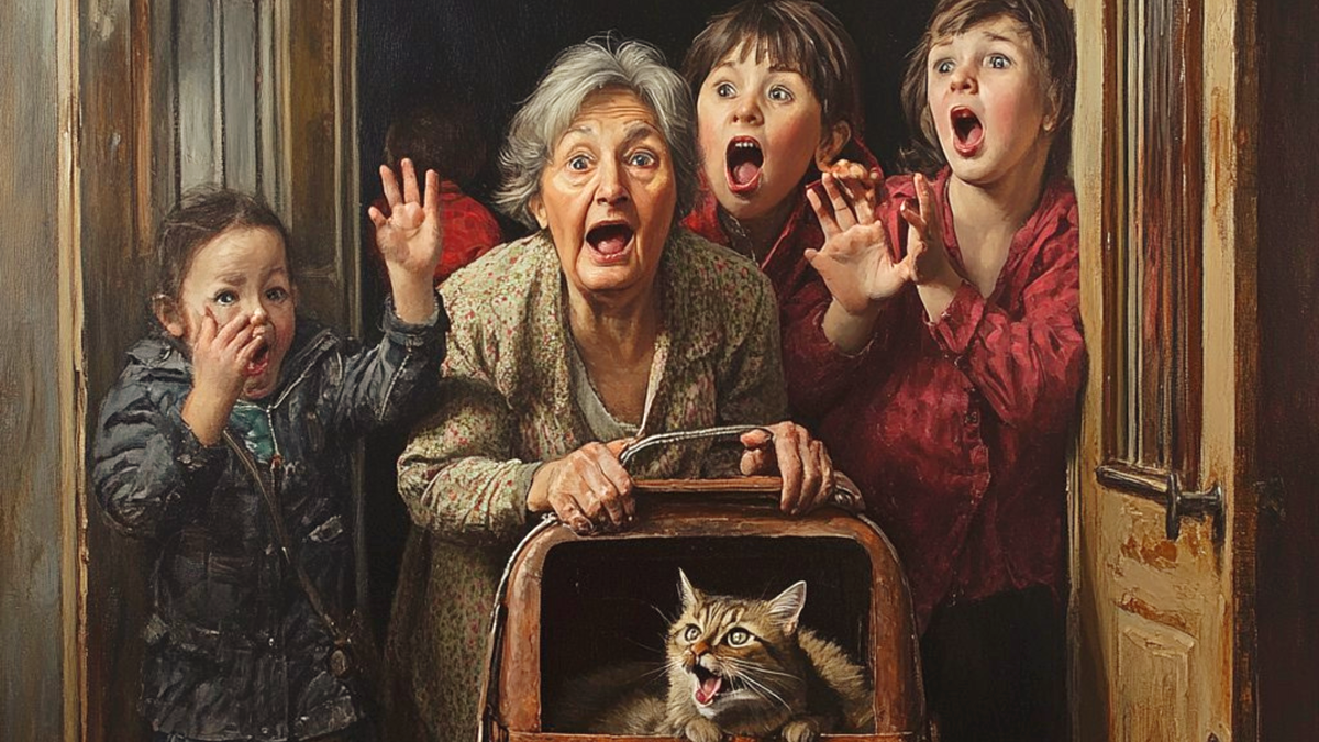 Дети — Мишка, 7 лет, и Анечка, 5 — уже носились по квартире, громко топая и переворачивая всё, что попадалось под руку. Кот в переноске выл как пожарная сирена.
