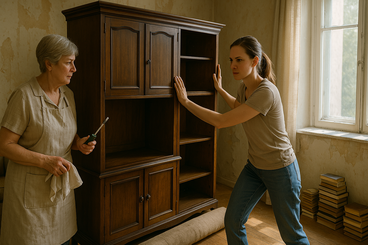Прежде чем двигать тяжёлый шкаф, Марина и Галина Петровна освободили его от книг и альбомов с фотографиями. Мать задумчиво перебирала томики, сетуя на пыль, а дочь складывала всё в коробки, стараясь держать паузу — утренний разговор о «доченьке» всё ещё витал в воздухе.