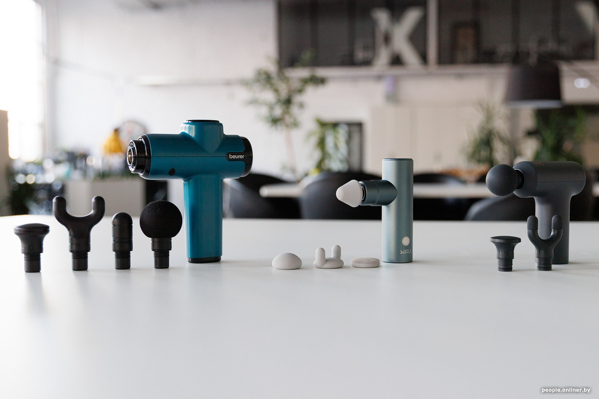 Нам на тест попали сразу три перкуссионных массажера: Beurer MG 99, Miru BM-18 и Xiaomi Mijia Massage Gun.