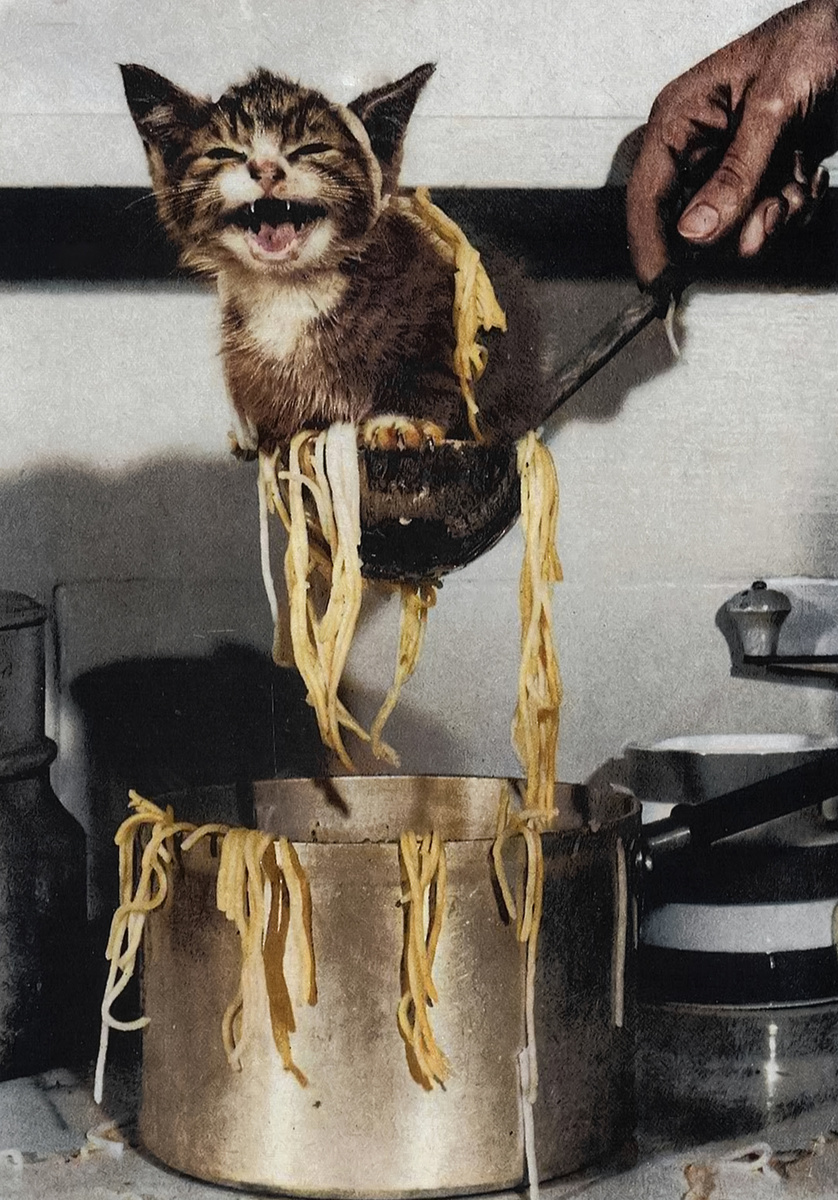 Пушистые питомцы сами по себе дарят радость и поднимают настроение своим хозяевам. Но порой котики удивляют еще больше, демонстрируя необычное поведение: имитируют человеческие привычки или проявляют настоящую смекалку. Такие моменты вызывают неподдельный восторг у всех, кому посчастливится их наблюдать. Фотографии, запечатлевшие эти забавные эпизоды, моментально становятся популярными в сети, принося улыбки тысячам людей. Именно такую подборку с очаровательными и остроумными кошачьими выходками я подготовил для вас. Все фотографии были сделаны на протяжении ХХ века, и раскрашены мной в XXI. Приятного просмотра и хорошего настроения! Фотография из журнала «The Best of LIFE», 1975 год. Новоселье, 1970-е. Традиция запускать кошку в новую квартиру — это древний обычай, который до сих пор сохраняется в некоторых культурах и семьях. Считается, что кошка, благодаря своей чуткости и способности "чувствовать" энергетику пространства, может очистить дом от негатива, устранить дурные предчувст