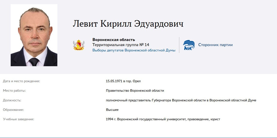 Левит является сторонником партии. Он претендует на территориальную группу №14 (Семилукская). В 2020 году там по списку избрался глава строительной компании «Выбор» Александр Цыбань. Одномандатный округ представляет Владимир Ключников – он тоже подался на участие в предварительном голосовании. Господин Цыбань – нет.