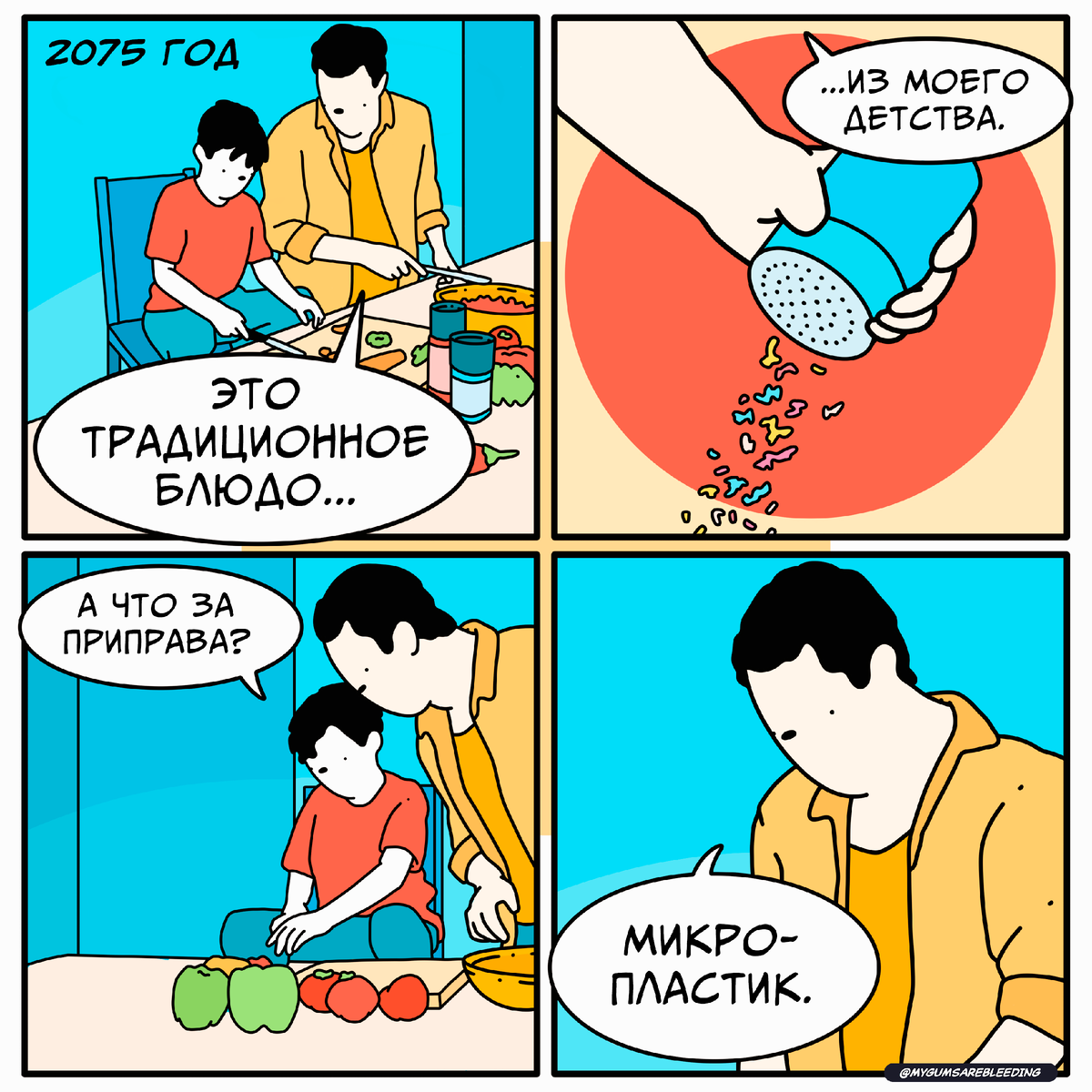 Абсурдный юмор и минималистичный визуал - это те качества. которые присущи многим современным юмористическим сериям веб-комиксов. Но несмотря на общие черты, каждый проект, конечно же, по своему уникален. Вот и творчество героя сегодняшней статьи имеет свои отличительные черты, среди которых довольно специфический юмор, безэмоциональные персонажи и ироничные замечания к современной реальности. Смесь в итоге получается, как минимум, интересная и, само собой, очень смешная. Надеюсь, что эти комиксы понравятся и вам! My Gums Are Bleeding (англ. «Мои Десны Кровоточат») - это серия юмористических веб-комиксов, созданная американским иллюстратором Майлзом Эриксоном (Miles Erickson). Проект был запущен в 2020 году, все комиксы серии выходят в соцсетях (можно найти по нику MyGumsAreBleeding), а также на сайте Reddit. В необычном названии проекта нет какого-то особо смысла: в одном из интервью Майлз рассказал, что ник MyGumsAreBleeding он использовал для личного аккаунта в соцсетях, который бы