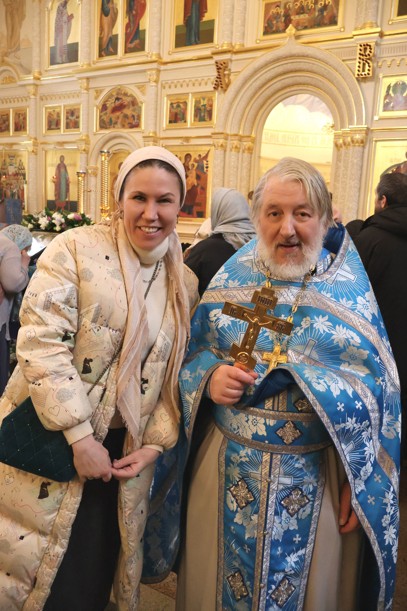 Радуйтесь! Благовещенье Пресвятой Богородицы! "Благовещенье и свет, Вербы забелели. Или точно горя нет, Право, в самом деле? Благовестие и смех, Закраснелись почки. И на улицах у всех Синие цветочки". Это у Константина Бальмонта "синие цветочки", а у нас в Москве - снег лежит, зима вернулась. Но радости никто нашей у нас не отнимет. 7 апреля 2025 год. Москва. Храм свт.Иова Сегодня ко мне подошел в храме мужчина и предложил меня сфотографировать, а то "смотрит, я всех фотографирую-фотографирую". И вот он захотел сфотографировать меня. Хорошо, что рядом в это мгновение оказался мой любименький отец Александр КОПЯТКЕВИЧ. И вот незнакомец нас запечатлел. Жаль, имени его не спросила. Хороший человек.