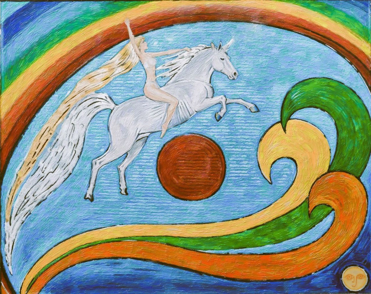 Творец, не долго думая (а зачем, если мысль сама зовёт?), вскочил на него, ведь только на Единороге можно дотянуться до радуги.