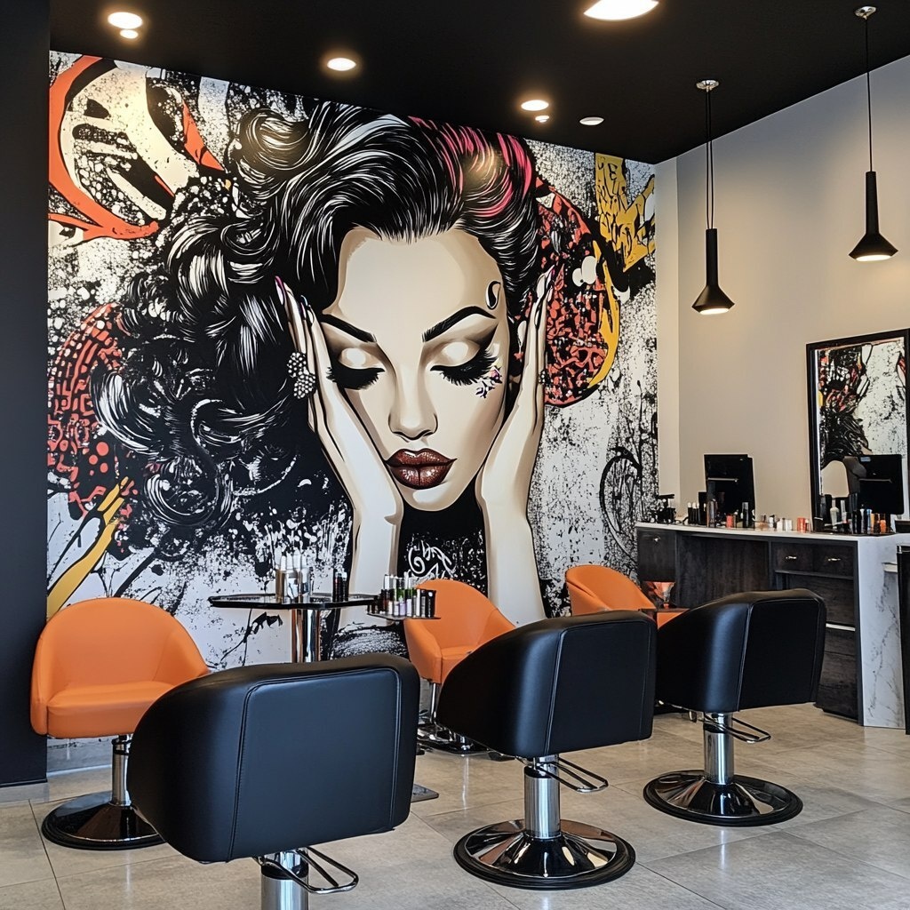 Создано на основе запроса: A wall of a nail salon is decorated with a picture of a stylish woman doing nail art