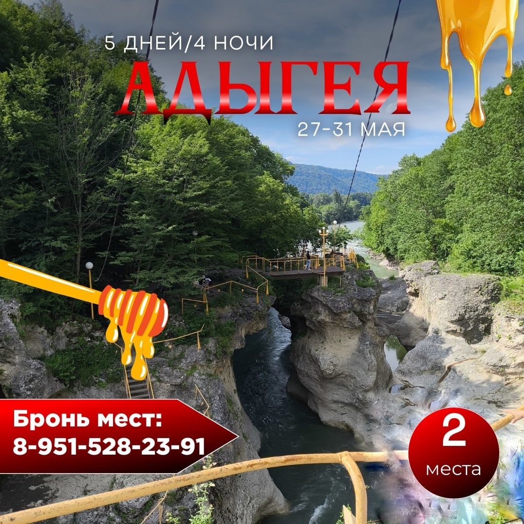 💛💛💛💛💛 🌷 Время путешествия! 🤩🤩🤩🤩 Объявляем 🤩🤩🤩🤩 скидку 🤩🤩🤩🤩 на тур! Адыгея - не только горы (Лайт) 👉👉👉👉👉👉👉👉👉 27-31 мая 💛Стоимость по акции: ✅️23500₽ вместо 31200₽✖️ ❗️Стоимость указана для одного человека за 1 место в 2-местном номере. ❌ При одноместном размещении доплата 8000₽ 🤩 Сбор группы: ЖД-вокзал в Краснодаре или аэропорт Мин. Вод 🟡ПРОГРАММА ТУТ🟡 Пишите нам: ✉️ WhatsApp: 8-951-528-23-91 ✉️ Телеграм: @TRIP_ADM_Bot