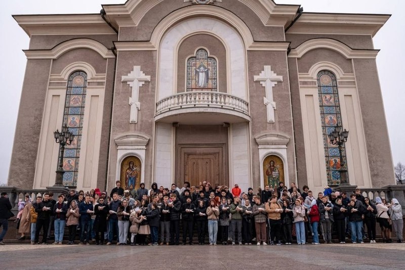 В Свято-Преображенском кафедральном соборе молодёжь выпустила голубей в честь праздника Благовещения
