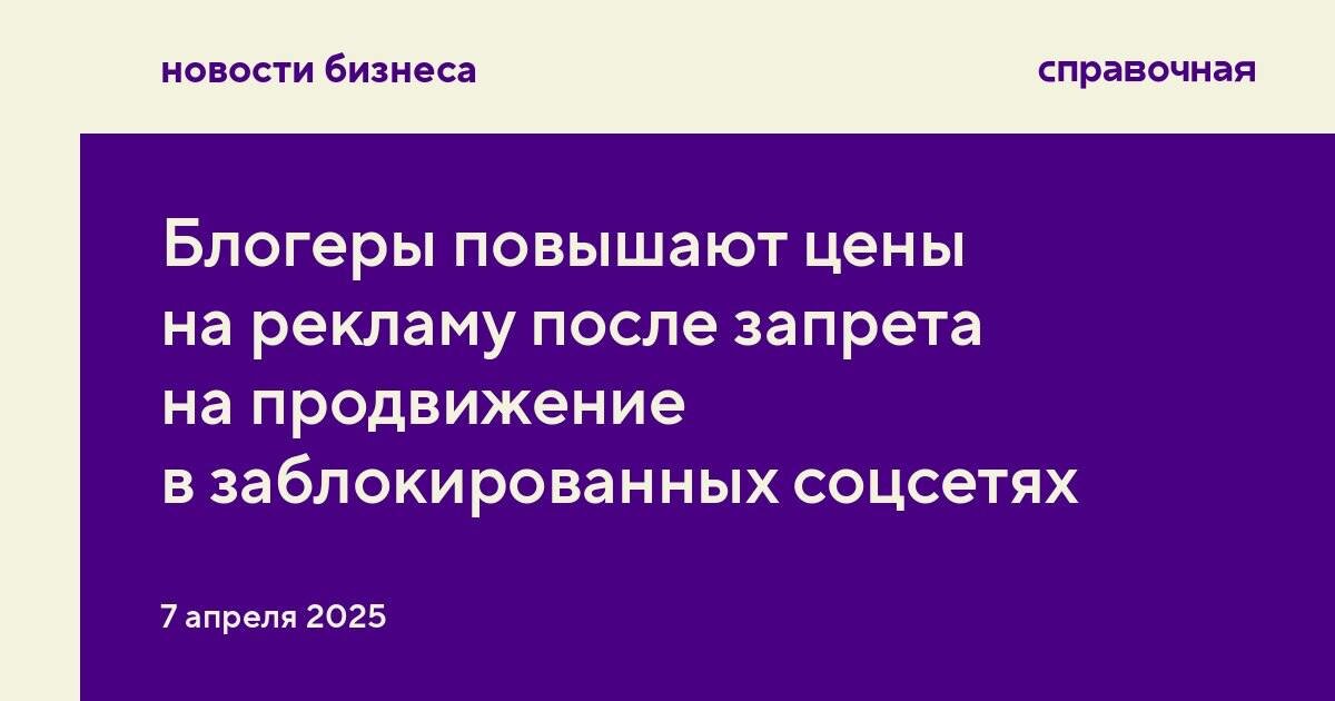 Блогеры начали повышать цены на рекламу в соцсетях. В среднем стоимость выросла на 20–30%, а у некоторых авторов и на 50%, сообщает Коммерсантъ со ссылкой на данные Ассоциации блогеров и агентств (АБА). ➡️ Цены начали расти после принятия Госдумой законопроекта, который запрещает размещать рекламу на заблокированных или запрещённых в России платформах. К ним относятся Instagram*, Facebook* и X (ex. Twitter). Подробнее о новом законопроекте о рекламе рассказывали здесь. Закон ещё не вступил в силу — новые правила начнут действовать с 1 сентября 2025 года. По данным агентств, средние цены на рекламу у блогеров такие: 🔘 аудитория до 50 000 подписчиков — реклама от 5 000 до 15 000 рублей за размещение; 🔘 аудитория от 100 до 500 тысяч человек — реклама от 30 до 100 тысяч рублей; 🔘 крупные блогеры — от 800 тысяч рублей и выше. В реальности цена у каждого блогера будет своя, в зависимости от многих факторов. Многие уже перешли на легальные соцсети и развивают свои аккаунты там, а бизнес