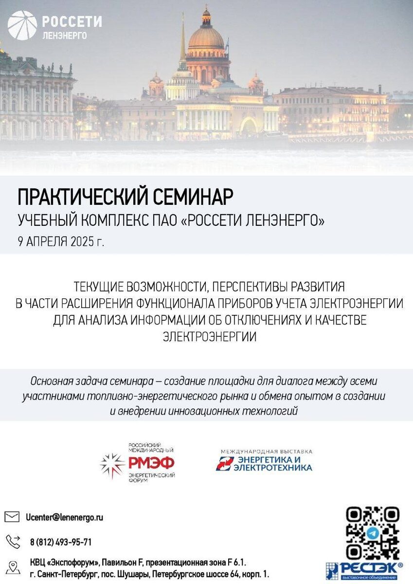 🫵⚡️Если вы ещё не успели подать заявку на участие в семинаре "Текущие возможности, перспективы развития в части расширения функционала приборов учёта электроэнергии для анализа информации об отключениях и качестве электроэнергии", то сейчас самое время! ‼️🗓️Учебный комплекс #УКРоссетиЛенэнерго напоминает, что мероприятие состоится 9⃣ апреля в 1⃣2⃣:0⃣0⃣на площадке Российского международного энергетического форума (РМЭФ). 👥 📃 Докладчиками семинара выступят представители #РоссетиЛенэнерго, компаний ООО "ПрософтСистемы", ООО "АЙ-ТОР", ООО "Инженерный центр "Энергосервис", а также Санкт-Петербургского Горного университета Екатерины II. ‼️Ключевые темы мероприятия: ✅Предпосылки к расширению функционала приборов учёта электроэнергии для анализа информации о качестве электроэнергии ✅Обоснование режимов работы электротехнического комплекса с возобновляемой генерацией ✅Анализ несинусоидальных напряжений и токов с применением сплайн-аппроксимации ✅Инновационные пункты коммерческого учёта,