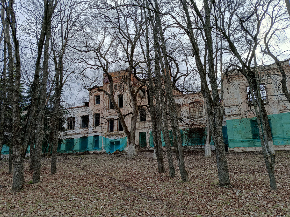 На территории психбольницы в Орловке: развалины корпусов и памятник жертвам фашизма.