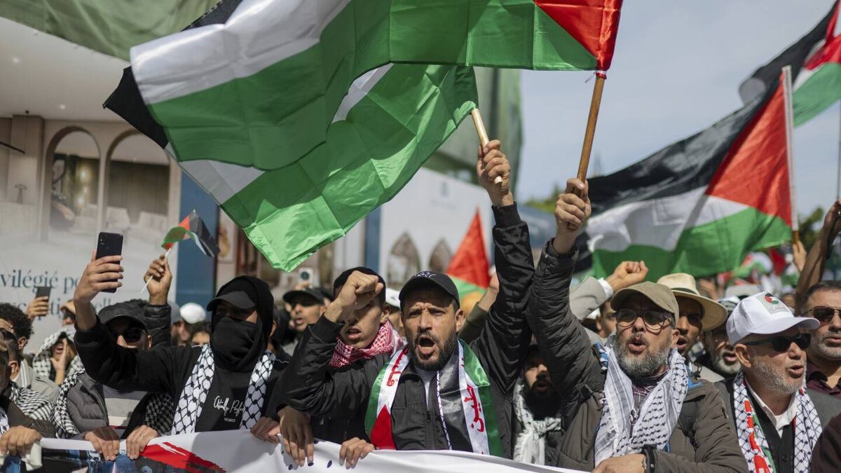 Десятки тысяч марокканцев 6 апреля вышли на митинги в Рабате в поддержку палестинцев и против последнего наступления Израиля в секторе Газа.