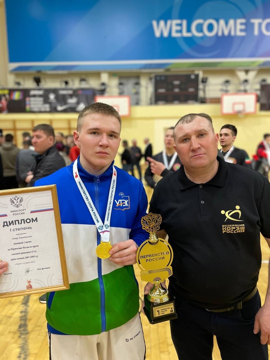 Воспитанник ДЮСШ с.Караидель Анвар Ахматгалеев стал чемпионом России по борьбе корэш В Казани завершилось Первенство России по корэш в трех возрастных категориях. В состязаниях приняли участие более 400 спортсменов, представителей и специалистов со всей России. Всего на турнире было разыграно 27 комплектов наград. Наш район на соревнованиях представлял воспитанник ДЮСШ с.Караидель Анвар Ахматгалеев, который порадовал новой победой. В упорной Анвар занял 1 место в категории юноши 2007-2008 г.р. в весовой категории 65 кг. Тренером нашего чемпионом России является его отец Алмаз Ахматгалеев. Поздравляем Анвара Ахматгалеева и его тренера Алмаза Мансуровича с заслуженной наградой и желаем дальнейших успехов и побед.
