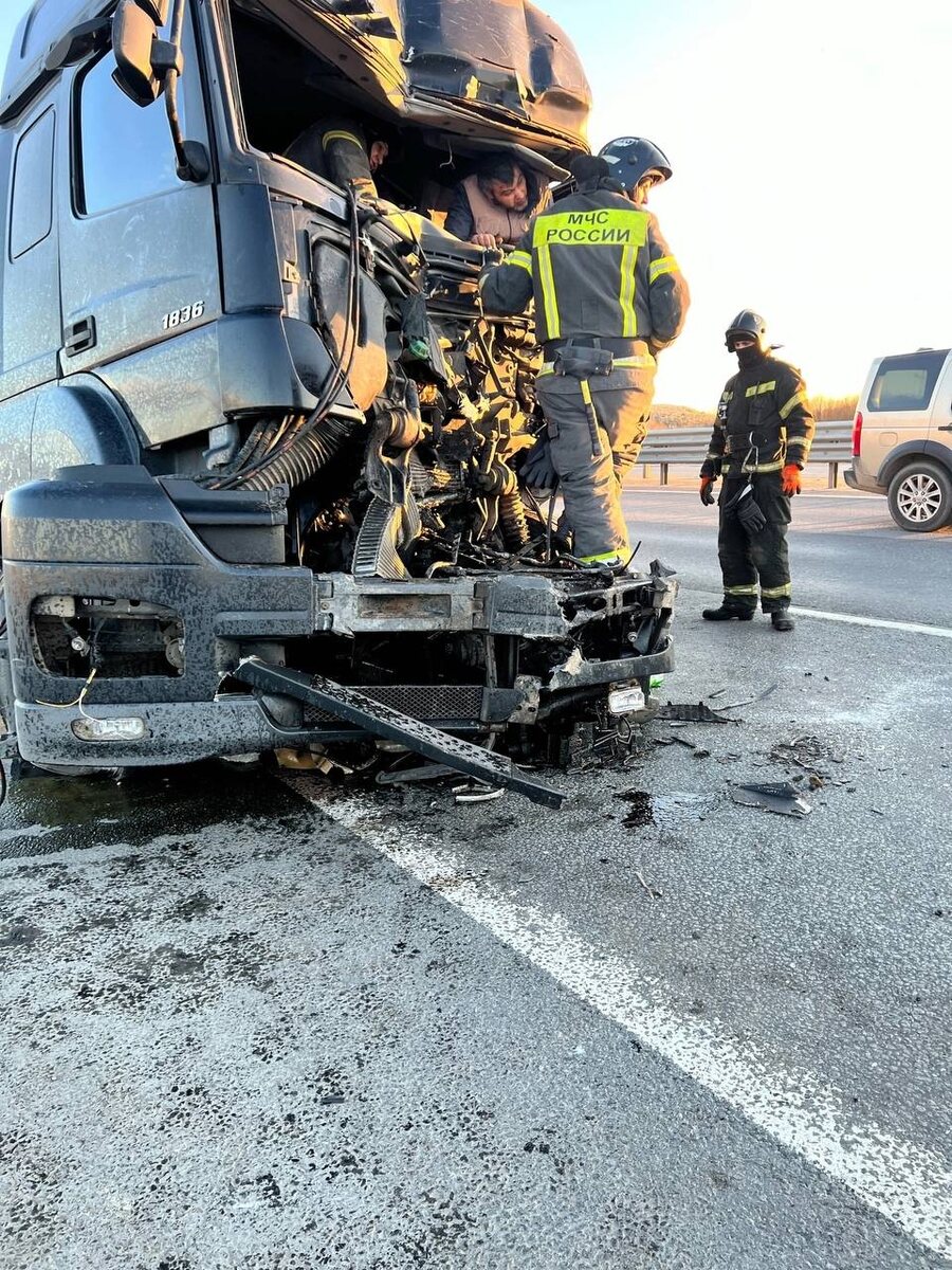 На Киевском шоссе на 42-м км трассы Р-23 «Псков» произошло ДТП с участием двух грузовиков. Один из грузовиков наехал сзади на попутную фуру, в результате чего его кабина сильно повреждена. По данным ФКУ Упрдор «Северо-Запад», в аварии пострадал один человек. ДТП произошло между развязками с дорогами 41К-010 и 41К-223. 👉🏼Подпишись