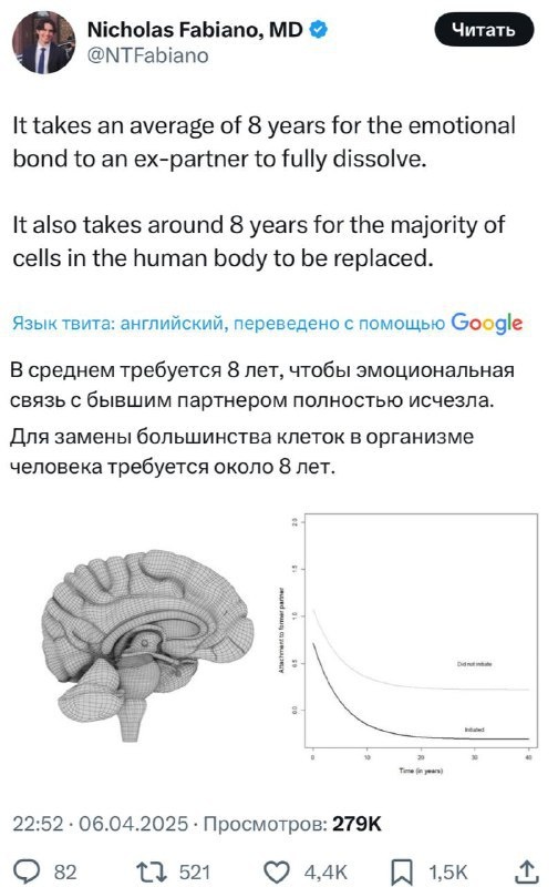 Учёные подсчитали: чтобы окончательно отпустить бывшего, нужно около 8 лет 😮💨 И дело не в гороскопах и психотерапии — всё в биологии. За этот срок организм почти полностью обновляется: от клеток до эмоциональной памяти. Связи, которые раньше цепляли — стираются, как кэш в браузере. Так что забудьте про мифические «три года любви» — по-настоящему перегорает всё только к восьмому. Подробнее: https://hard-tm.su/threads/84832/ 🕹HARD-TM — Подписаться