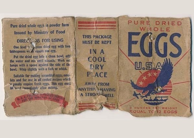 А ещё - те самые ЯЙЦА РУЗВЕЛЬТА. Так у нас на фронте и в тылу называли яичный порошок, поставляемый в пачках весом 142 грамма. Этот объём заменял десяток свежих яиц, которые весили 500–800 грамм. При этом продукт был калорийный и быстрый в приготовлении, что было крайне востребовано во фронтовых условиях.