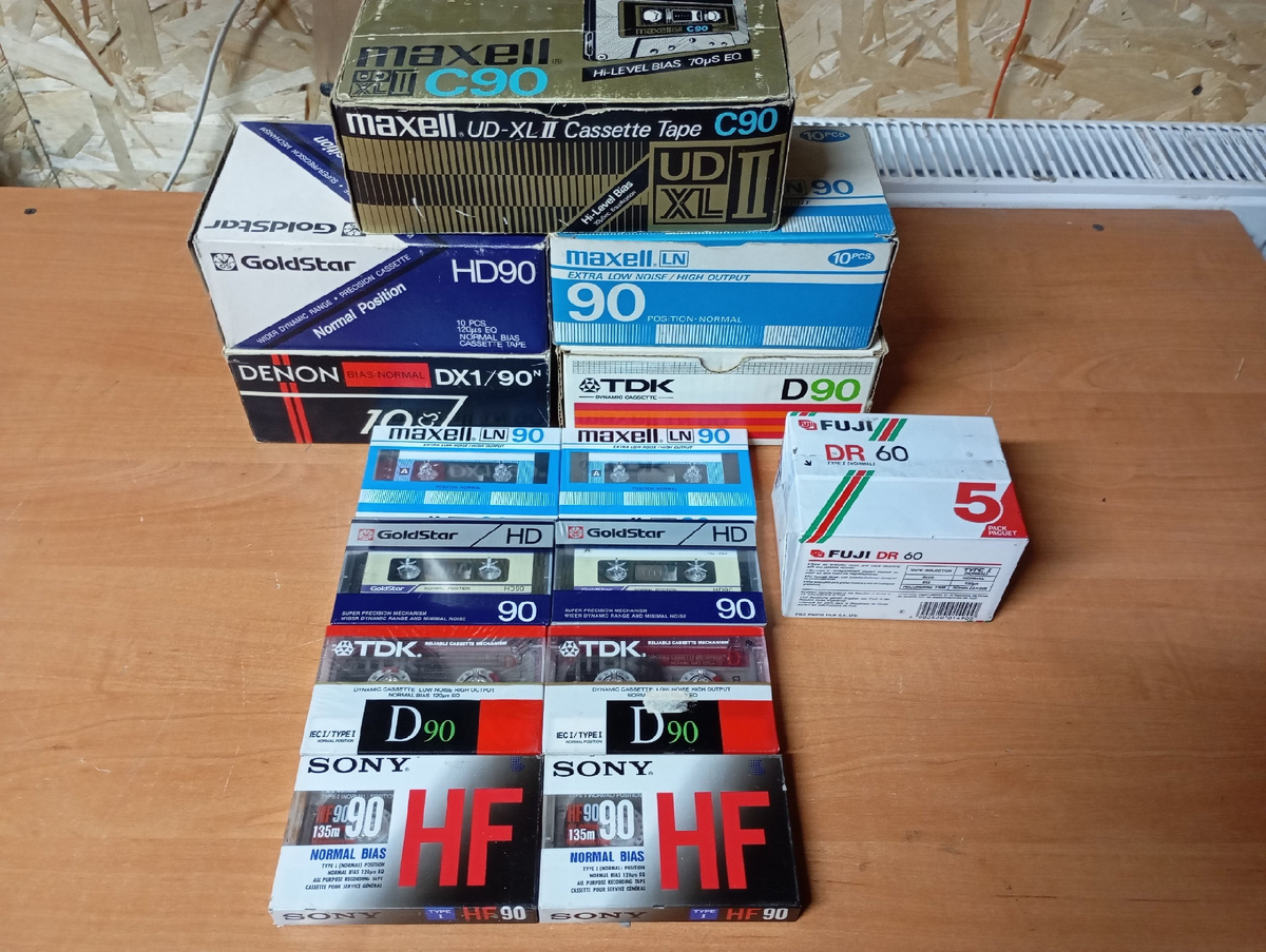 Далее о новых, запечатанных кассетах. Есть у меня их десятка 4. В одном посте я уже писал о том, что удалось недорого купить пару десятков Sony, Fuji и TDK по весьма неплохой цене. https://dzen.ru/b/ZR_iL7oM1ne7Giqd Остальные Goldstar HD90 и Maxell LN90 у меня лежат уже года 4 и достались по случаю с кучей техники. Вообще коллекционирование запечаток - это как нумизматика или бонистика. Если с БУ кассетами (или даже с той же техникой) есть два варианта - поставить на полку и применить по назначению, то распечатав аудиокассету она сразу же теряет в цене (среди коллекционеров) минимум процентов так под 50. В общем по назначению лучше не применять.