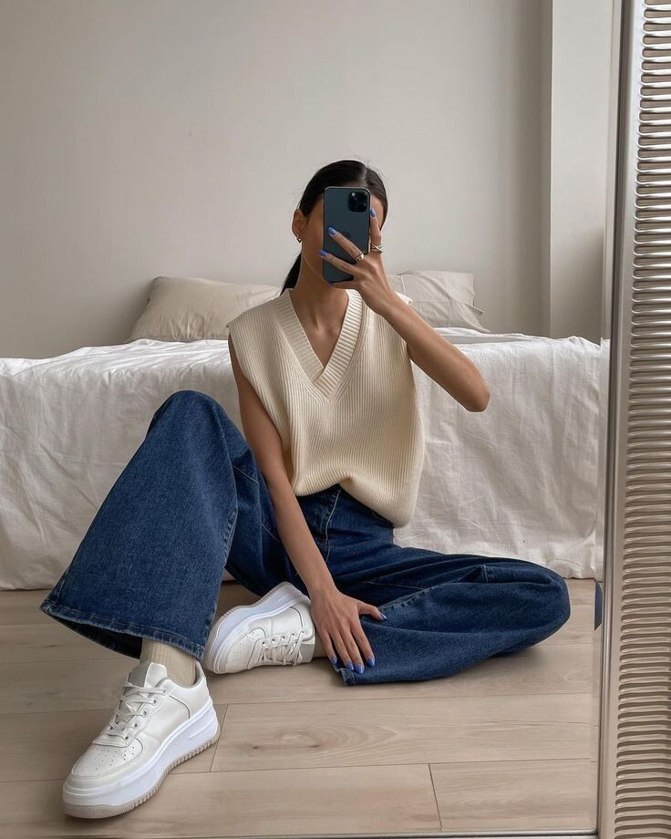 Несмотря на то, что сейчас актуальны балетки Мэри-Джейн и обувь таби (с раздвоенным носком), лаконичные кеды — это база. Тренды трендами, но в повседневной жизни хочется носить что-то более комфортное. И кеды — идеальный вариант.