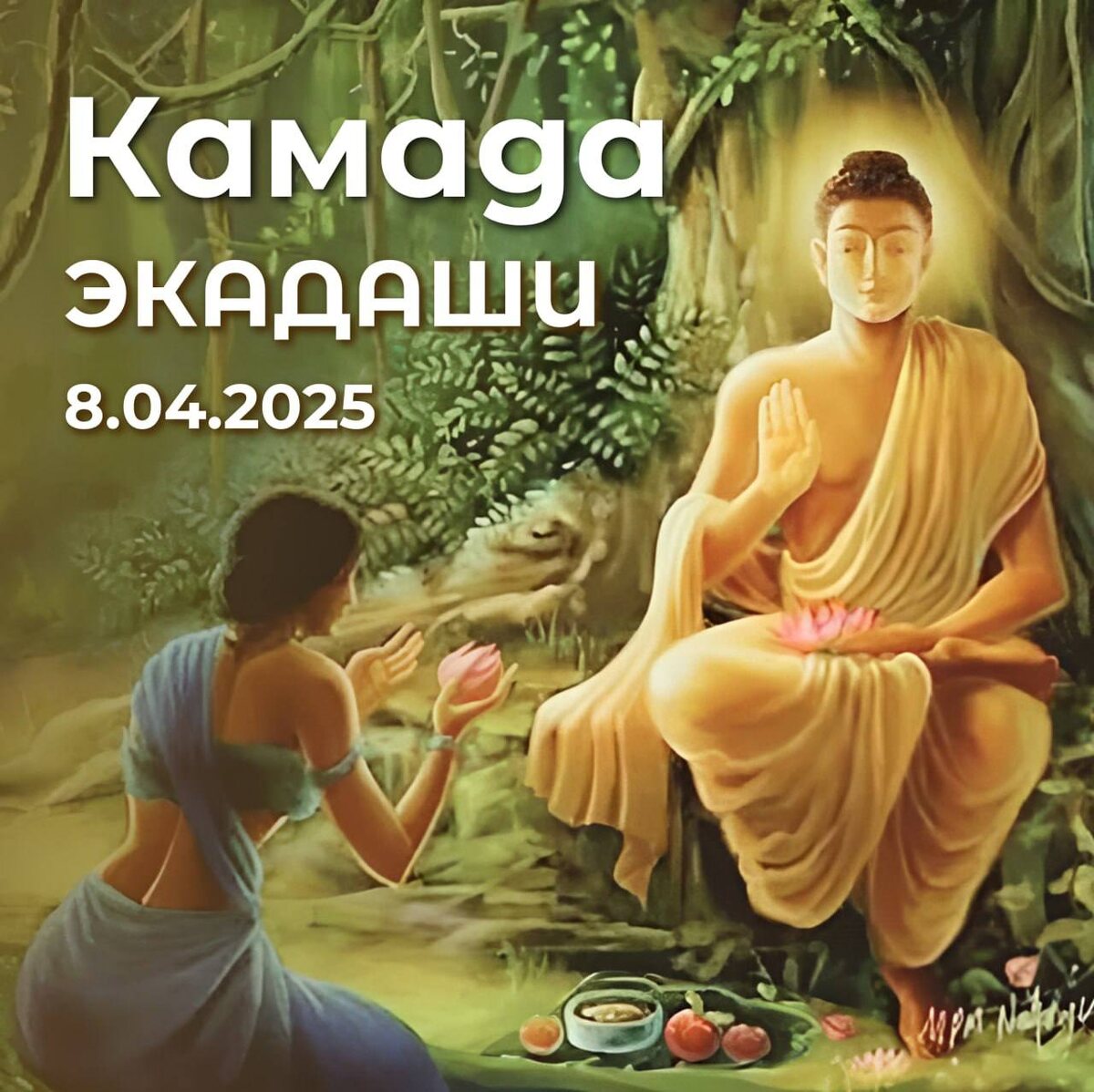 🌿 КАМАДА ЭКАДАШИ: день очищения и исполнения желаний 🌿 8 апреля 2025 года ⌛️ Время входа:: 8 апреля 2025 года 05.42 (МСК) ⌛️ Время выхода 9 апреля 2025 года с 05.41 до 10.13 (МСК) Камада Экадаши, считается одним из самых могущественных для духовного преображения и исполнения желаний . Пост в этот день разрушает даже тяжкие грехи, спасает от проклятий и дарует освобождение из цикла перерождений . 💫Легенда о Камада Экадаши История этого дня описана в «Вараха Пуране». Махараджа Дилип, великий прадед Господа Рамачандры, узнал от мудреца Васиштхи, как гандхарва Лалит, проклятый царем Пундарикой за невнимательность во время пения, превратился в ужасного демона-людоеда. Его жена Лалита, следуя совету святого Шринги, соблюдала пост в Камада Экадаши и передала ему заслуги. Благодаря этому Лалит мгновенно освободился от проклятия и вернул свой прекрасный облик . Как соблюдать Камада Экадаши? 1️⃣ Пост: 🔸Полное воздержание от зерновых (риса, пшеницы, чечевицы), мяса и бобовых. Доп
