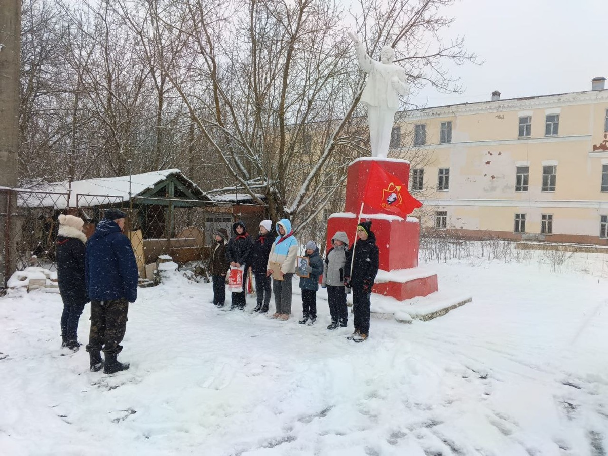 В воскресенье 6 апреля, несмотря на, прямо сказать, зимнюю погоду, у памятника В.И. Ленину в микрорайоне Тезино состоялась торжественная линейка по приëму Масловой Ани в пионерский отряд имени Е.В. Виноградовой Ивановской общественной организации «Алые паруса».