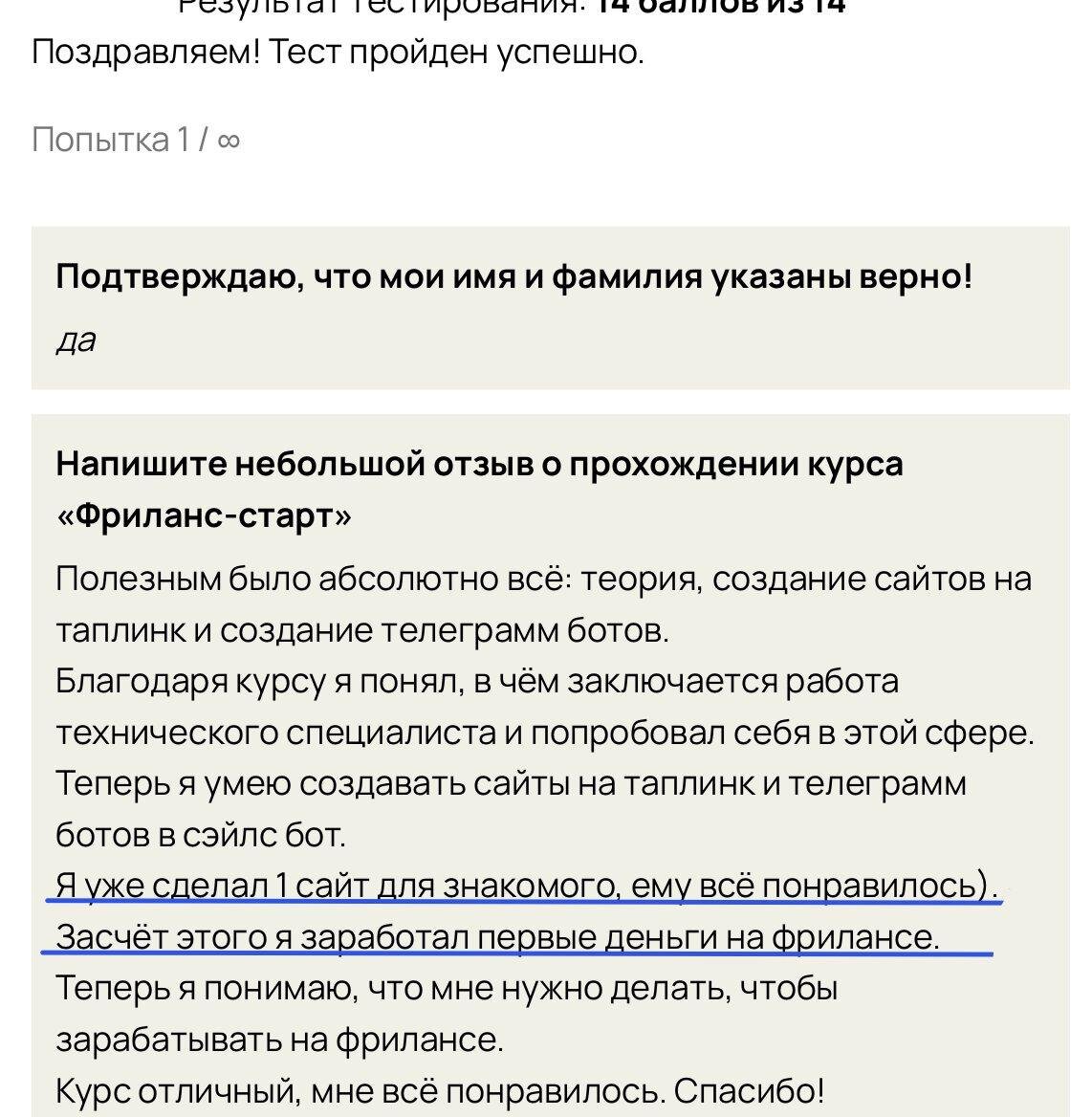 💡 сейчас бизнесу нужны люди, которые помогут с техническими задачами: настроят Telegram-бота, сделают сайт, подключат нужные сервисы. Предпринимателям не хочется тратить время на это — они готовы платить! 💡что сайт, что бот делать максимум 1 вечер, логично выбирать из них 💡например наш бесплатный курс «Фриланс-старт» Там мы даем 2 урока по сайтам и ботам, и конечно делимся фишками поиска клиентов Все участники эфиров получают 5+ полезных бонусов и чек-листов: ▪️Полезный файл «5 востребованных услуг, на которых вы сможете зарабатывать уже с 1-го месяца» ▪️Список сервисов необходимых для работы тех. специалистом ▪️Чек-лист «3 простых шага на фрилансе до первых 50 000 руб.» ▪️Полезный файл «Топ-9 способов поиска заказчиков» ▪️Полезный файл «Как откликаться на вакансии, чтобы заказчик выбрал именно вас» Хотите пройти обучение на бесплатном курсе❓ Приходите и забирайте бонусы, чтобы быстрее найти первого клиента РЕГИСТРАЦИЯ НА «ФРИЛАНС-СТАРТ»