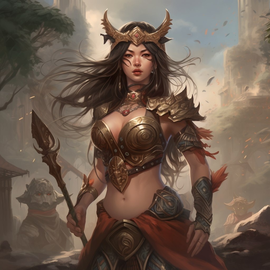 Создано на основе запроса: a Korean barbarian woman, full body view, magic the gathering art style, high definition