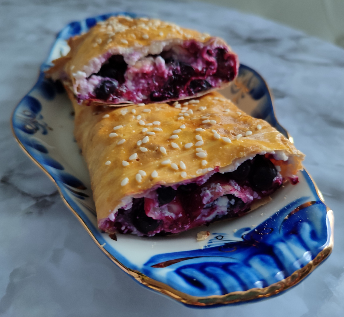 Вот штрудель из лаваша я хотела приготовить уже очень давно. И тут позавчера моя Натуся присылает мне в нельзяграме ссылку на наипростейший рецепт) Только там он был с вишней, а у меня с замороженной чёрной смородиной.