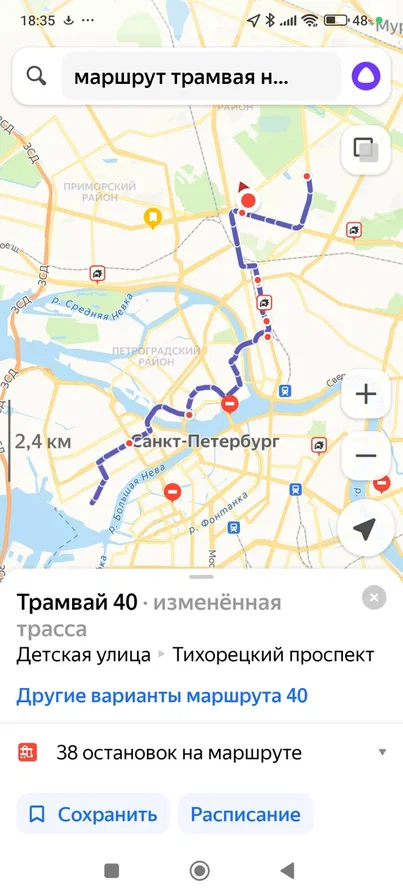 Несмотря на то, что многие трамвайные маршруты сократили или вообще убрали, трамвай № 40 ещё ходит по довольно длинному маршруту.