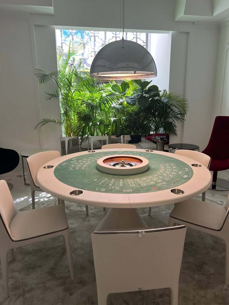 Еще один впечатляющий элемент — игорный стол на экспозиции Versace Home