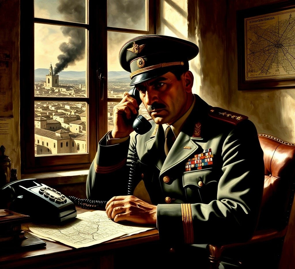 По мотивам реальных событий Пролог. Толедо в огне 18 июля 1936 года. Испания. Город Толедо, древняя столица королей, пылал. На улицах гремели выстрелы, чёрный дым поднимался от горящих церквей. Республиканские милиционеры в рваных комбинезонах с красными повязками на рукавах рыскали по домам, вытаскивая офицеров, священников, «фашистов». Полковник Хосе Москардо шёл по узкой улочке, прижимаясь к стенам. Его тёмный китель был расстёгнут, на виске — тонкий шрам от осколка. В кармане лежал пистолет, но стрелять было бессмысленно — врагов слишком много. — Полковник! — шёпотом окликнул его молодой лейтенант. — Алькасар уже окружён, но наши там ещё держатся. Москардо кивнул. Крепость Алькасар — древний символ испанской воинской славы. Если она падёт, республиканцы сломят дух восстания во всём центре страны. — Проберёмся. Нас ждут. Глава 1. Последний рубеж Алькасар возвышался над Толедо, как каменный исполин. Его стены, помнившие ещё мавританских завоевателей, теперь должны