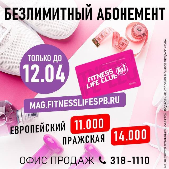 Лето уже на горизонте — пора приводить себя в 🔥форму! Залетаем на акцию: 🏋 9 месяцев безлимитных тренировок ➕ 2 месяца заморозки (если вдруг на море) ➕ ВСЕ групповые тренировки включены ➕ 2 занятия с тренером — в подарок! FITNESS LIFE Европа — 11 000 ₽ FITNESS LIFE Парк — 14 000 ₽ ✅ Без подводных камней ✅ Без ограничений ✅ Только ты и твоя лучшая форма! Лето не ждет — а абонементы разбирают! Бронь по номерам: 📞 Европа — 2070212 📞 Парк — 3181110 Покупай онлайн, не отходя от холодильника с ПП: mag.fitnesslifespb.ru