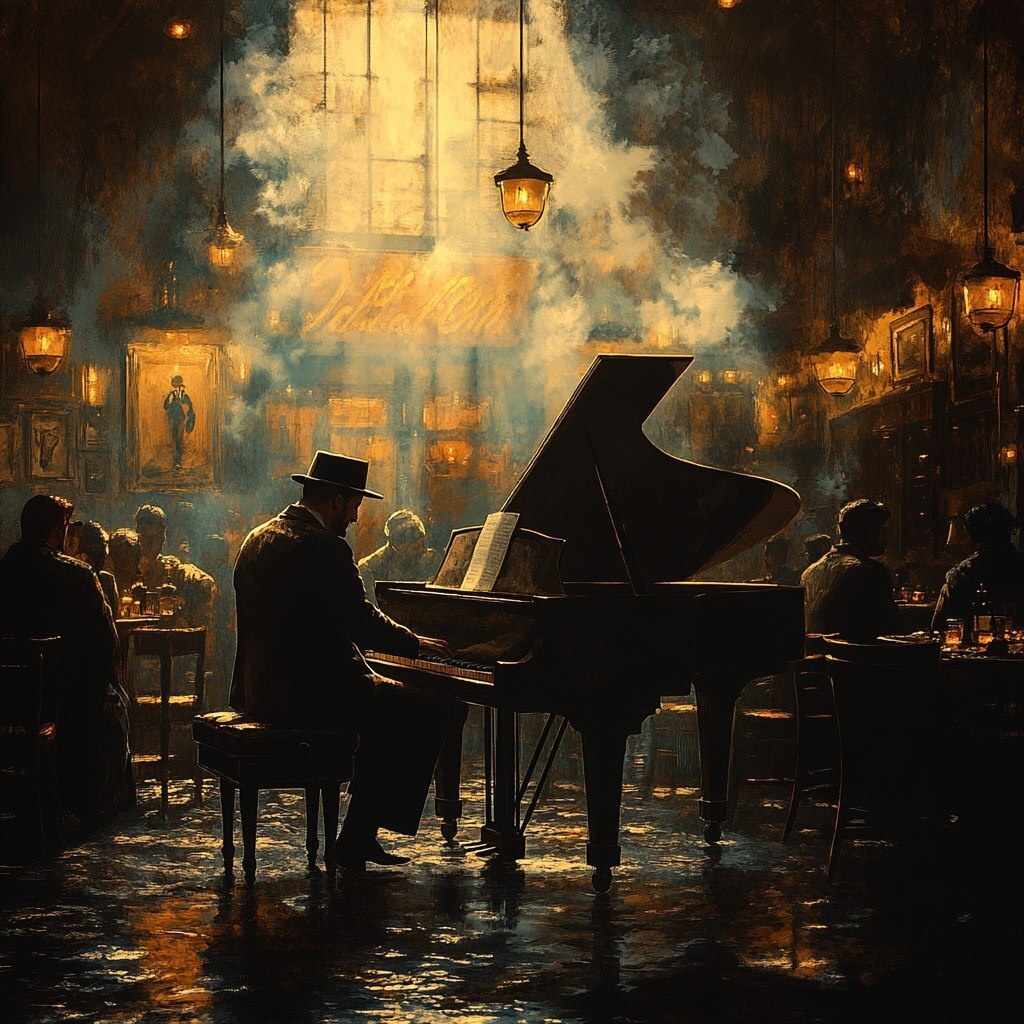 Создано на основе запроса: Casablanca Prompt: A dimly lit, smokey bar interior with a grand piano in the center. A man in a classic suit and fedora sits at the piano, playing a melancholic tune. The bar is filled with patrons from different backgrounds, all dressed in 1940s attire. The atmosphere is nostalgic and romantic, with soft shadows and a sense of longing, in the Ghibli style --- Автоперевод: Приглашение Casablanca: тускло освещенное, дымное барное интерьер с большой фортепиано в центре. Как тебе это изображение? 🤔 https://dzen.ru/id/65c0c65c86e4f837c27b24d7 #ИИ #AI #нейросеть #midjourney #art
