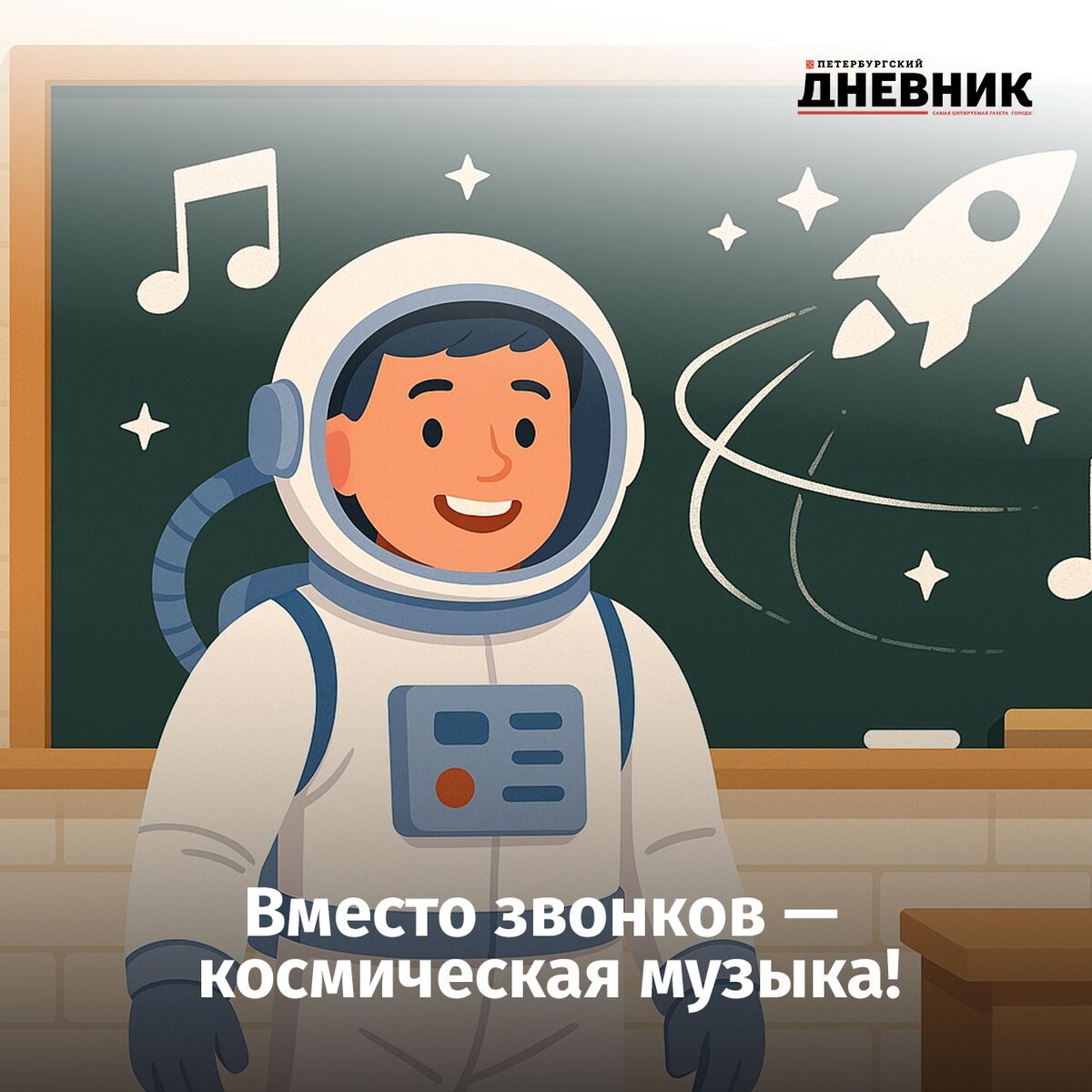 👨🚀 В школах прозвучат фрагменты популярных песен о космосе Акция, приуроченная ко Дню космонавтики, пройдет в рамках проекта «Мелодии вместо звонков», который был запущен еще в прошлом году. Среди песен, которые будут звучать в школах вместо звонков — «Трава у дома», «Прекрасное далеко», «Надежда», «Притяжение Земли» и другие. Фото: DALL-E Петербургский дневник