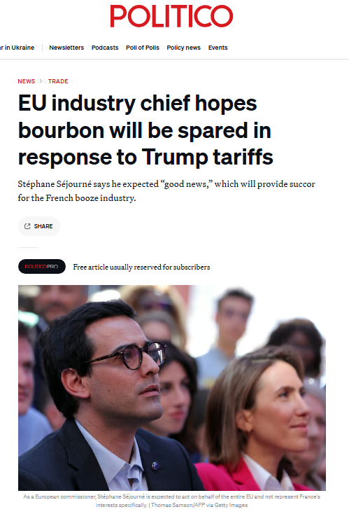 Главный еврочиновник, отвечающий за промышленность, молит о пощаде для американского бурбона