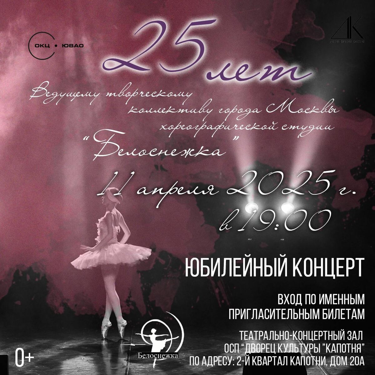 💛 11 апреля в 19:00 во Дворце культуры "Капотня" состоится юбилейный творческий вечер "25 лет. Лучшее" Ведущего творческого коллектива города Москвы хореографической студии "Белоснежка". ✨ За четверть века под руководством талантливых педагогов – Татьяны Геннадьевны Гагиной и Ирины Сергеевны Степановой – сотни детей познали радость движения, научились выражать себя через танец и обрели верных друзей. ✨ Студия "Белоснежка" – это не просто место для обучения танцам, это настоящий творческий коллектив, объединенный любовью к искусству и стремлением к самовыражению. Здесь царит атмосфера поддержки, вдохновения и взаимопонимания. Вход в зал строго по именным пригласительным билетам, которые можно получить по ссылке: https://tickets.mos.ru/widget/visit?eventId=58960&agentId=museum186&date=2025-04-11 Просим при себе иметь документ, удостоверяющий личность С 15 марта 2025 года на всех культурно-массовых мероприятиях, где предусмотрено размещение посетителей в соответствии с местами, указа