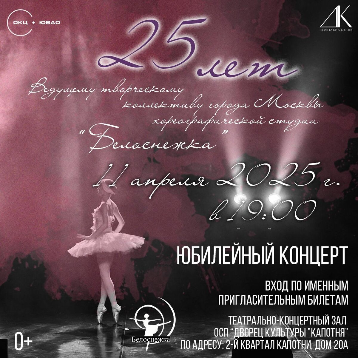 💛 11 апреля в 19:00 во Дворце культуры "Капотня" состоится юбилейный творческий вечер "25 лет. Лучшее" Ведущего творческого коллектива города Москвы хореографической студии "Белоснежка". ✨ За четверть века под руководством талантливых педагогов – Татьяны Геннадьевны Гагиной и Ирины Сергеевны Степановой – сотни детей познали радость движения, научились выражать себя через танец и обрели верных друзей. ✨ Студия "Белоснежка" – это не просто место для обучения танцам, это настоящий творческий коллектив, объединенный любовью к искусству и стремлением к самовыражению. Здесь царит атмосфера поддержки, вдохновения и взаимопонимания. Вход в зал строго по именным пригласительным билетам, которые можно получить по ссылке: https://tickets.mos.ru/widget/visit?eventId=58960&agentId=museum186&date=2025-04-11 Просим при себе иметь документ, удостоверяющий личность С 15 марта 2025 года на всех культурно-массовых мероприятиях, где предусмотрено размещение посетителей в соответствии с местами, указа