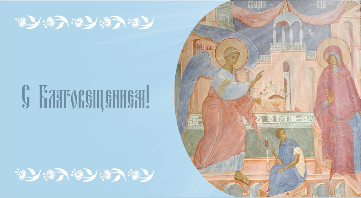 Дорогие, друзья! От всего сердца поздравляю вас с Благовещением Пресвятой Богородицы! Пример святой жизни Божией Матери, Ее смирение, красота и чистота Ее души, любовь к Богу и людям напоминают нам об идеале, к которому мы призваны стремиться. Желаю, чтобы мы, несмотря на неизбежные сложности, шли к этому идеалу, сохраняли верность избранному пути христианской жизни, молились Божией Матери как главной Ходатаице за нас перед Богом! И по Ее молитвам Господь направит, поможет обрести спасение, подарит мир и радость нашей душе! С любовью о Господе, настоятельница Марфо-Мариинской обители милосердия игумения Елисавета Тропарь, глас 1 Днесь спасе́ния на́шего глави́зна,/ и е́же от ве́ка та́инства явле́ние:/ Сын Бо́жий, Сын Де́вы быва́ет,/ и Гаврии́л благода́ть благовеству́ет./ Те́мже и мы с ним Богоро́дице возопии́м:/ ра́дуйся, Благода́тная,// Госпо́дь с Тобо́ю. Кондак, глас 4 Взбра́нной Воево́де победи́тельная,/ я́ко изба́вльшеся от злых,/ благода́рственная воспису́ем Ти раби́ Твои́, Богоро