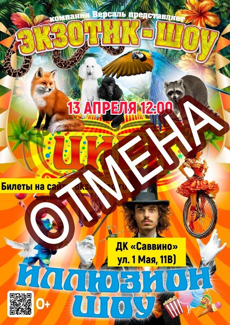 ❗ВНИМАНИЕ! ОТМЕНА! 13 апреля 12:00 Цирк "Экзотик - шоу" По возврату билетов: 89959990367 #творчествобалашиха, #Подмосковье, #культураподмосковья, #культурабалашихи, #железнодорожный, #дксаввино, #вПодмосковье,#НашеПодмосковье #вБалашихе, #Балашиха