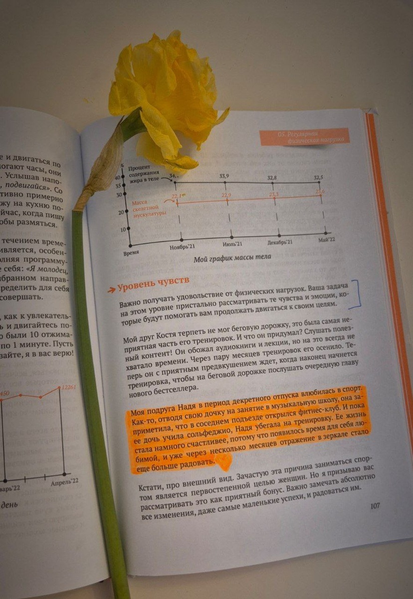 Открою вам секрет. Про меня написано в книге "Почва под ногами". Да, я действительно отдавала Веру в Домисольку и шла в подвальный клуб на тренировку. Ей было почти 5 лет. Не могла просто тратить время и ждать, нужно было использовать свою многозадачность. Чтобы она не пугалась, я обязательно фотографировала себя и потом ей показывала. Эти фото ещё и выкладывать начала в запретграме. Все это переросло в привычку и челендж, в котором многие мои друзья и знакомые побывали. В начале 2020 года я взяла на себя обязательство сделать 200 тренировок и легко сделала почти 250 - ковид помог. В тот период у меня много детских рисунков мамы с гантелями😂. И вот уже 5 лет я делаю от 100 до 150 тренировок в год, в основном параллельно с кружками детей. В прошлом году челендж выполнила, в позапрошлом- нет. В этом году уже месяц у меня простой в спорте, но, думаю, в апреле я это исправлю. Вот что иногда скрывается за одним абзацем хорошей книги😉 Спасибо, Юля! Невероятно приятно знать, что вроде