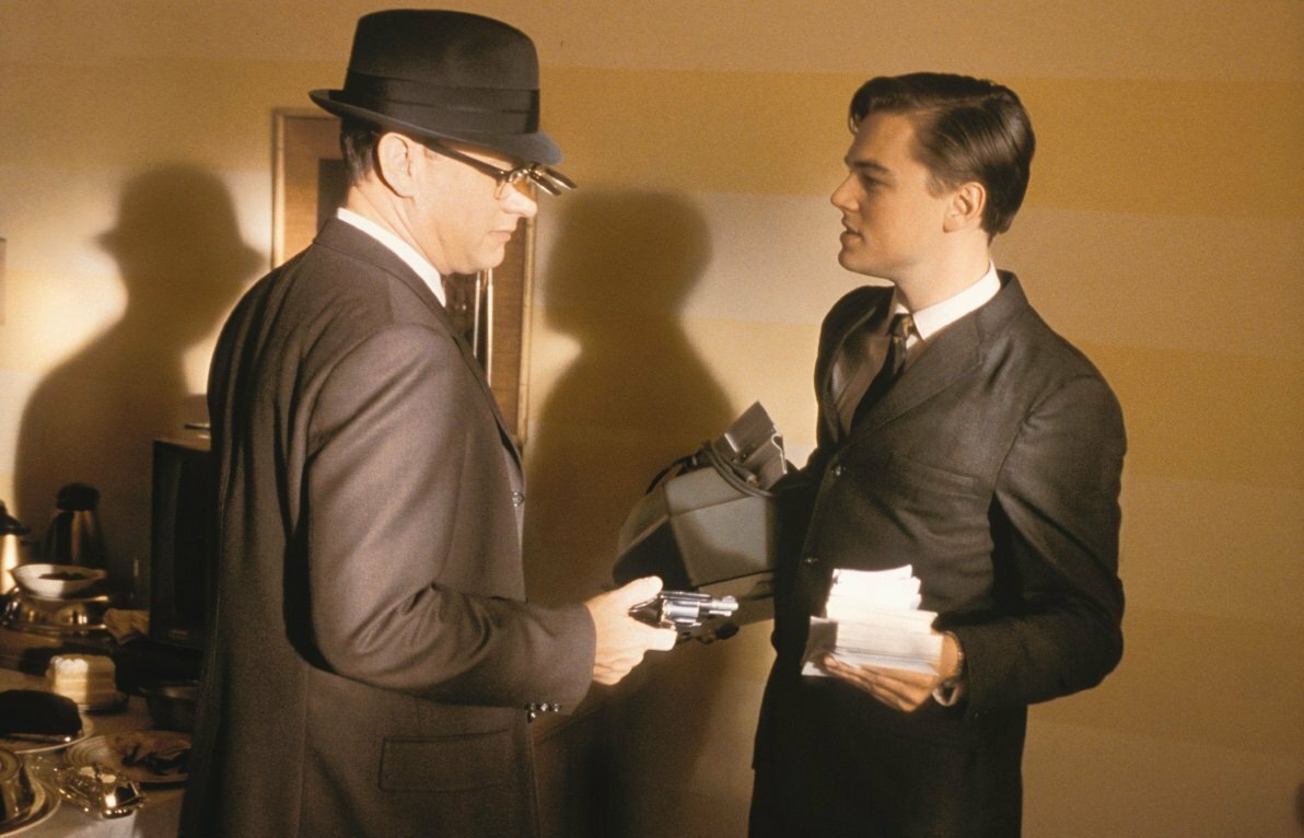 О чём: Леонардо Ди Каприо — харизматичный мошенник, который мастерски уходит от агента ФБР (Том Хэнкс).