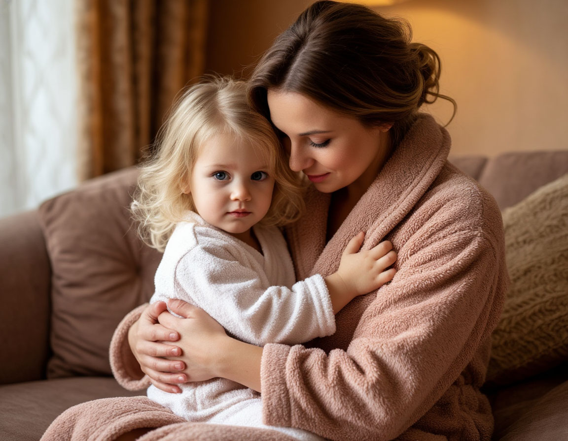 Дочь радостно прижимается к девушке. Трется щекой о халат.