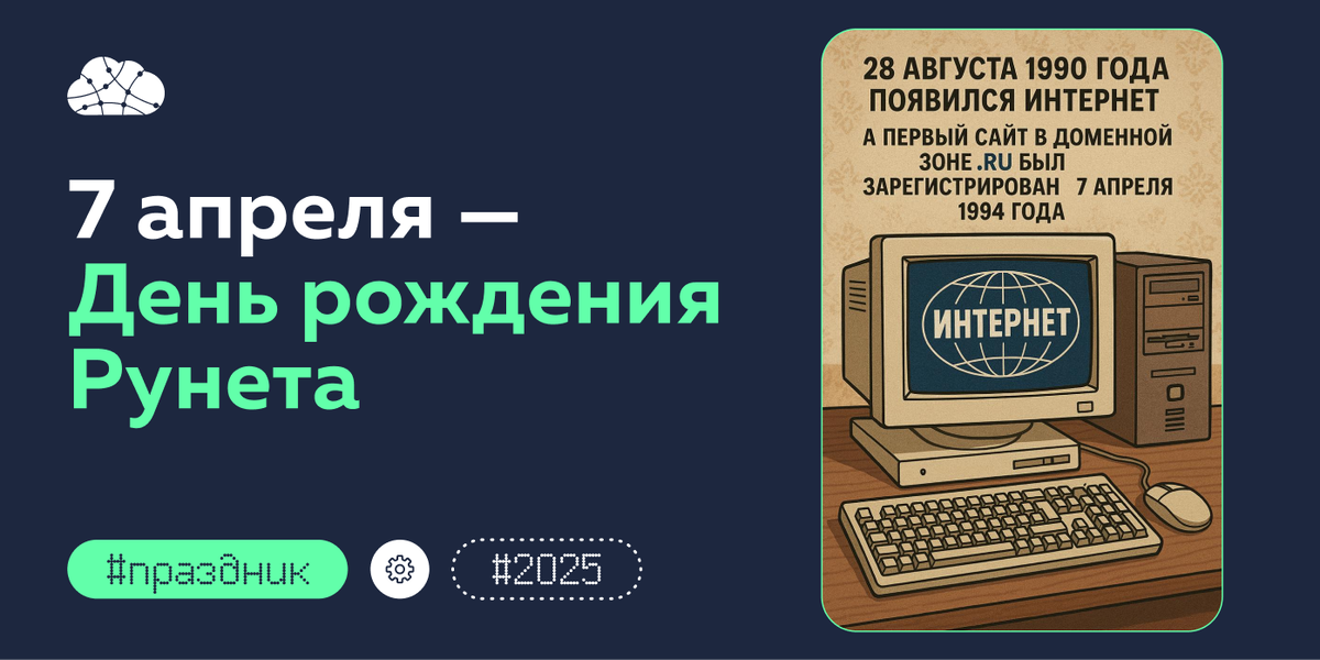 Сегодня, 7 апреля, мы отмечаем знаменательную дату — День рождения Рунета! 🌐 Эта дата стала важной вехой в истории интернета в России, ведь 31 год назад был зарегистрирован домен — .Ru — и внесен в международную базу данных национальных доменов верхнего уровня. С тех пор Рунет стал не только символом цифровых достижений, но и надежной платформой для бизнеса. Для нас, как облачного провайдера, развитие Рунета тесно связано с ростом технологий и востребованностью облачных сервисов. Мы гордимся тем, что участвуем в цифровой трансформации бизнеса, предоставляя надежную и безопасную инфраструктуру для наших клиентов. С днем рождения, Рунет!