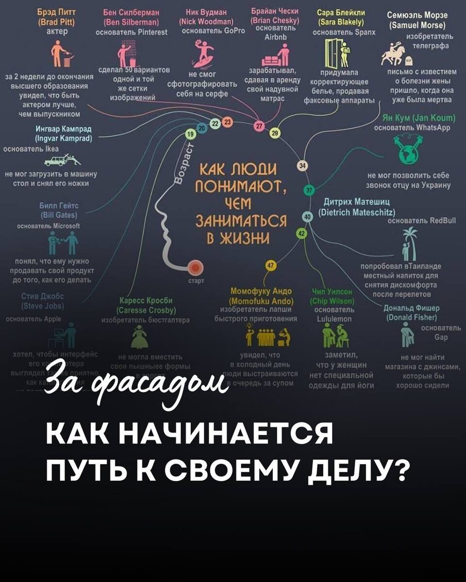 Как начинается путь к своему делу? В одном из телеграм каналов (многосерийный предприниматель) мы увидели эту инфографику с интересными исследованиями про людей, которые увидели несовершенство рынка! И сделали бизнес. Многие думают, что бизнес начинается с гениальной идеи. Но чаще всё начинается с повседневного неудобства. С момента, когда человек сталкивается с несовершенством — и решает: «Так больше не должно быть». Инфографика выше — это десятки историй именно таких решений. IKEA — из-за стола, который не помещался в багажник. GoPro — потому что не удалось снять волну. Lululemon — потому что не было удобной одежды для йоги. Spanx — чтобы обычное белье не портило фигуру и чувствовать себя уверенной в обычной одежде. Это не про великие амбиции. Это про маленькие инсайты, из которых рождаются простые, но мощные идеи: как сделать чью-то жизнь легче, удобнее, свободнее. В О2 Наследие мы часто видим, как предпринимательский путь начинается не с глобальной миссии, а с желания помо